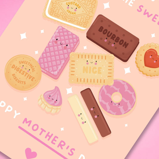 Cute Kawaii British Biscuit Print – Pastel Aesthetic Wall Art| Fun UK Biscuit Lover Poster | Kitchen Decor | Cosy Tea & Biscuit Illustration